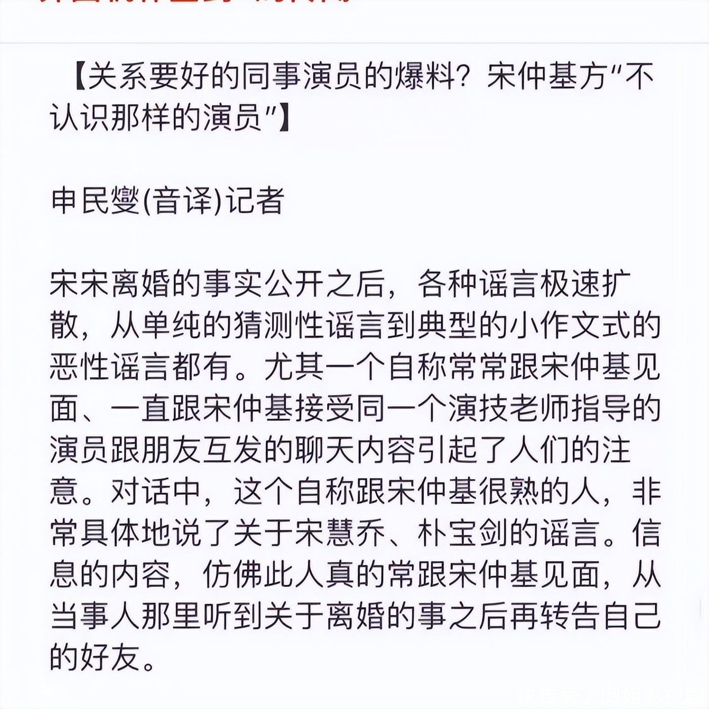 紧接着就有了关于宋慧乔婚内背叛的传闻,指向了另一位演员朴宝剑。