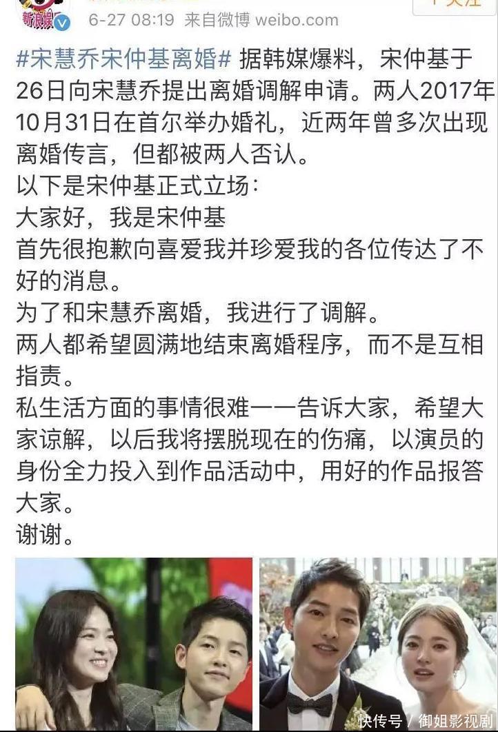 夫妻之间如此分对错?2019年在没有告知女方的情况下,宋仲基单方面就宣布了离婚。